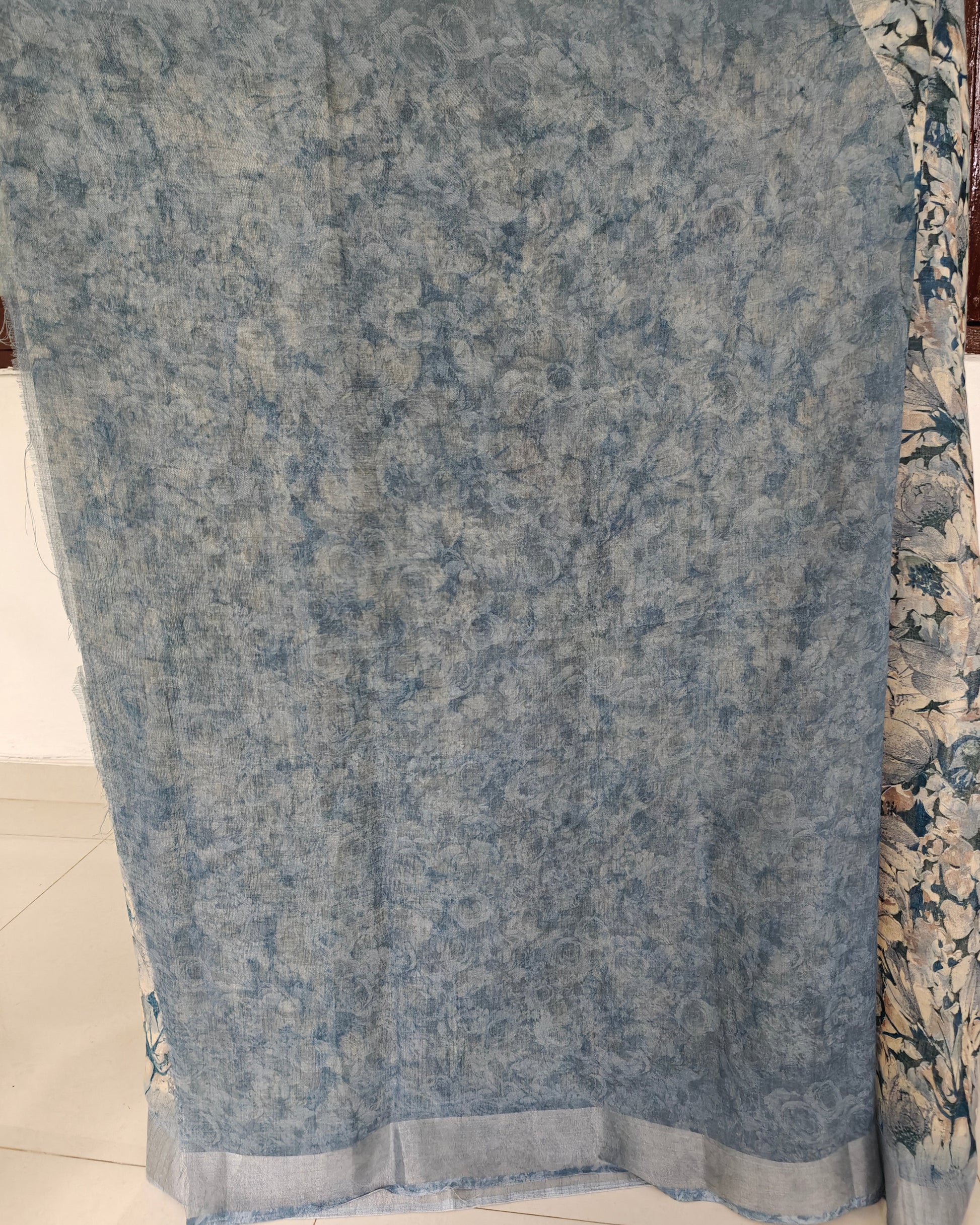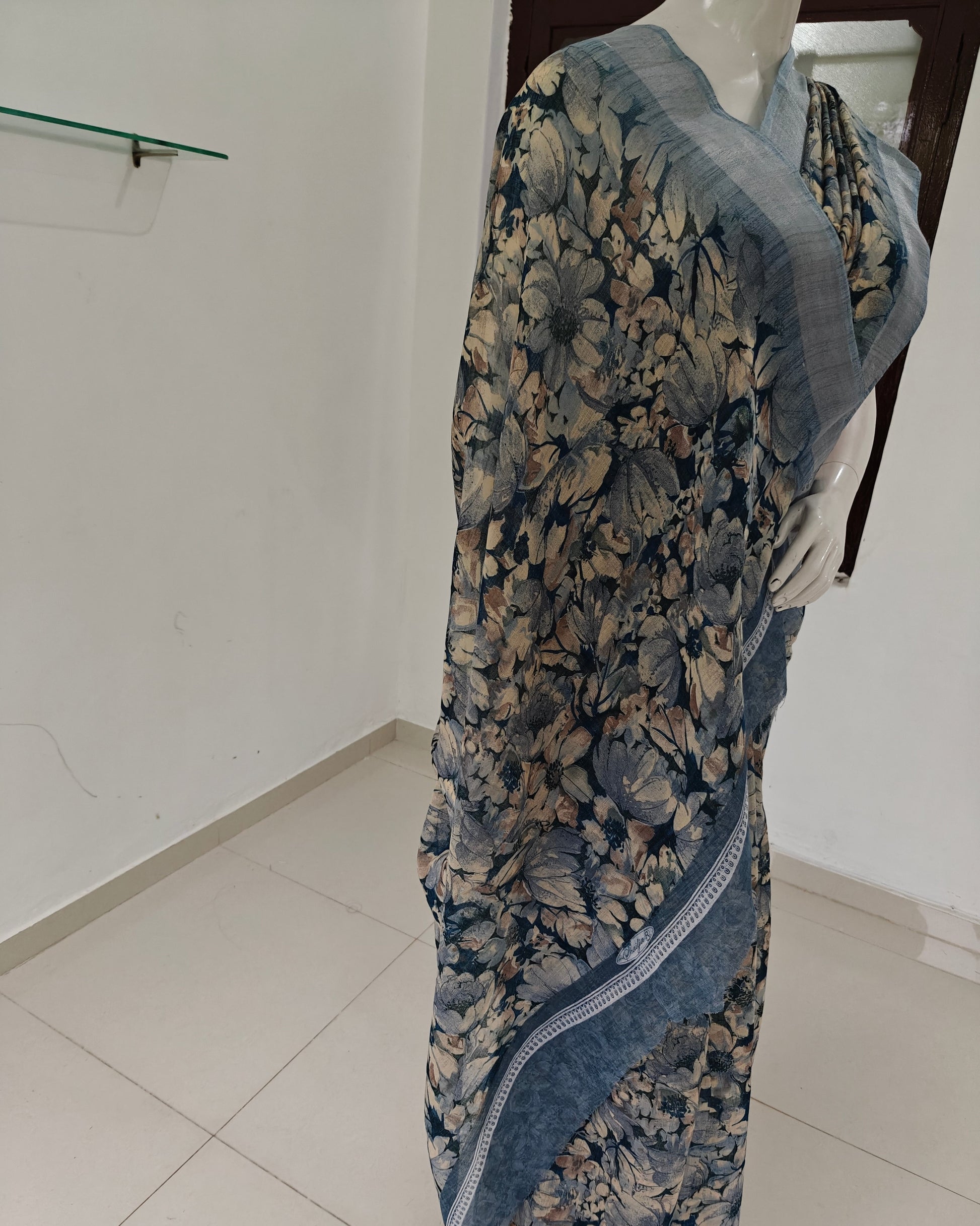 Ashen Bloom – Chhattisgarh Printed Mix Tussar Silk Saree in Smoky Grey