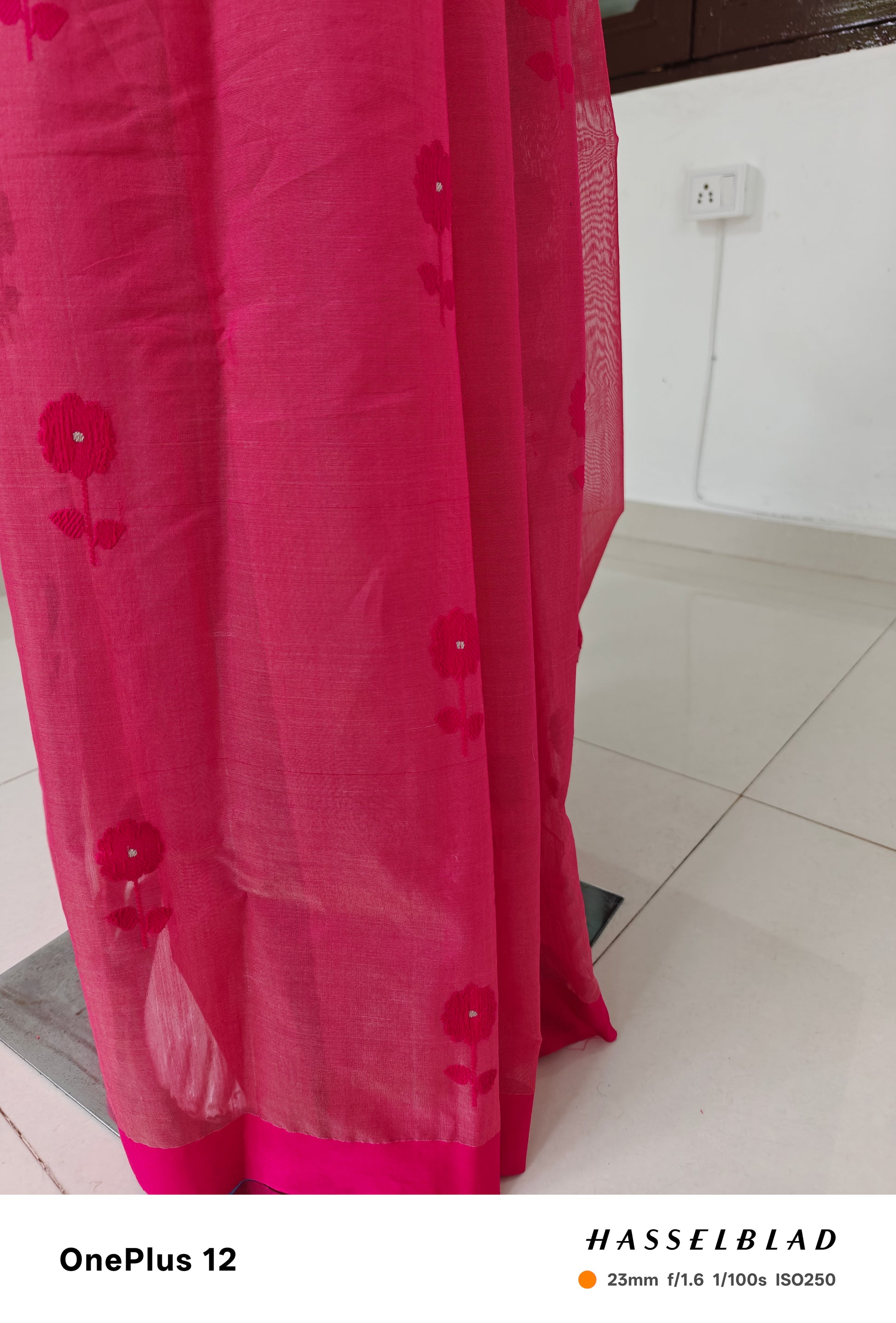 Crafted from a premium silk-cotton blend, the saree drapes effortlessly and feels feather-light on the skin. It strikes the ideal balance between comfort and sophistication.