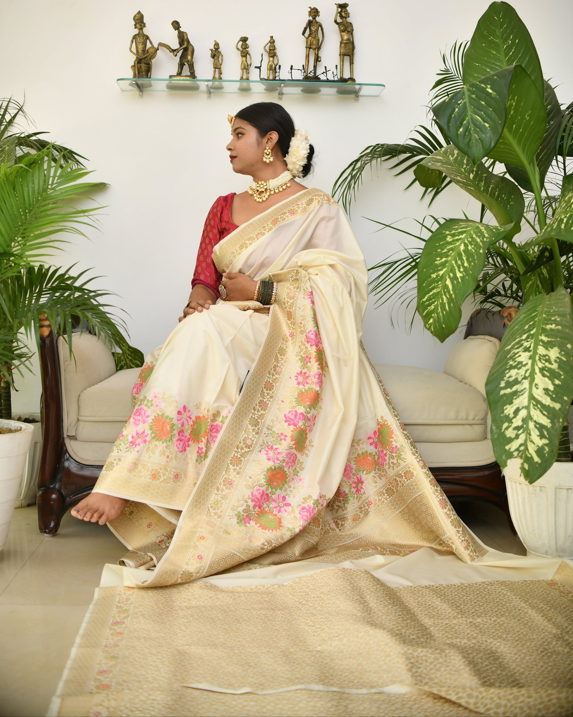 Color: Off-White with Pink & Gold Banarasi Detailing