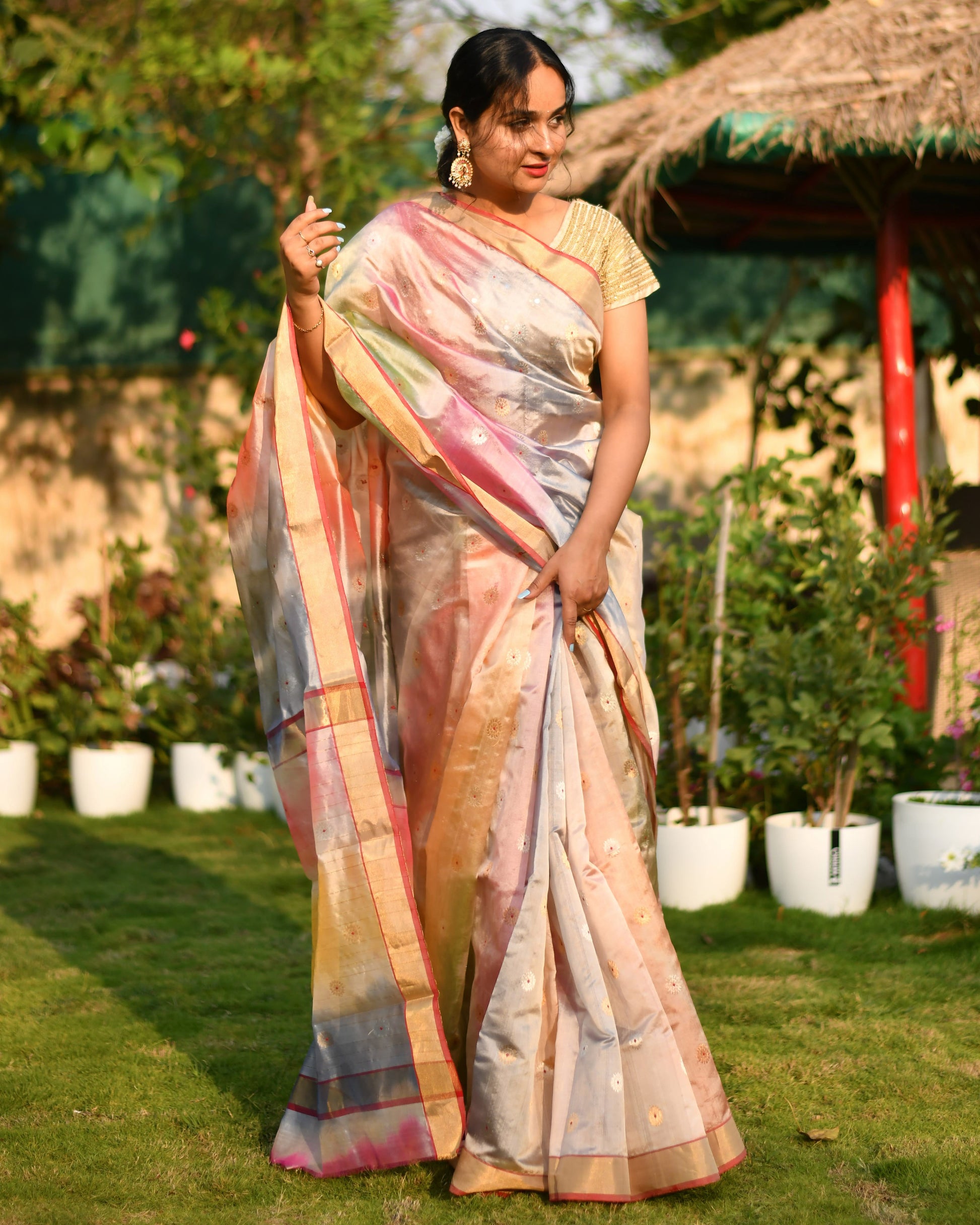 Royal Radiance – Handwoven Pure Dupion Silk Chanderi Saree with Blouse & Silk Mark Tag