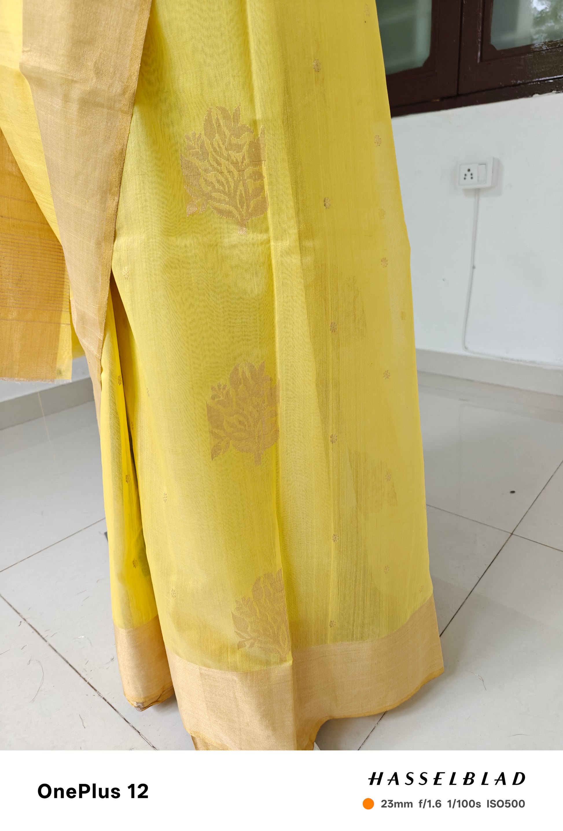 Sunlit Yellow – Pure Handwoven Silk Cotton Chanderi Saree with Blouse & Handloom Tag