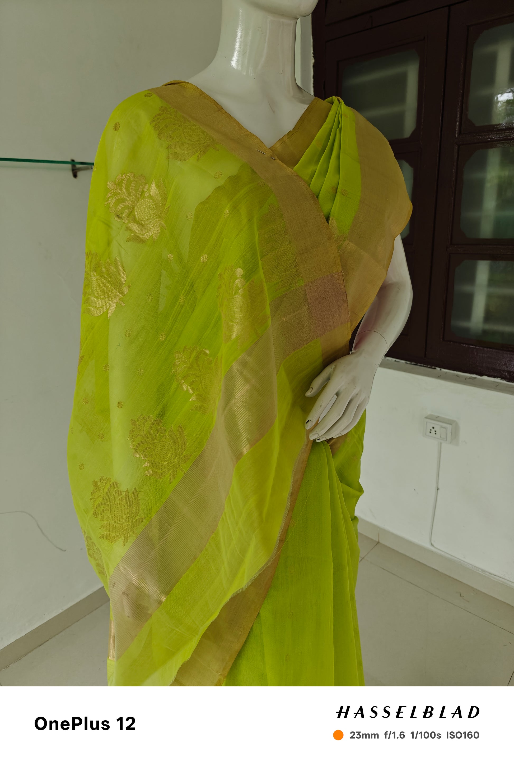 Timeless Grace – Pure Handwoven Silk Cotton Chanderi Saree with Blouse & Handloom Tag