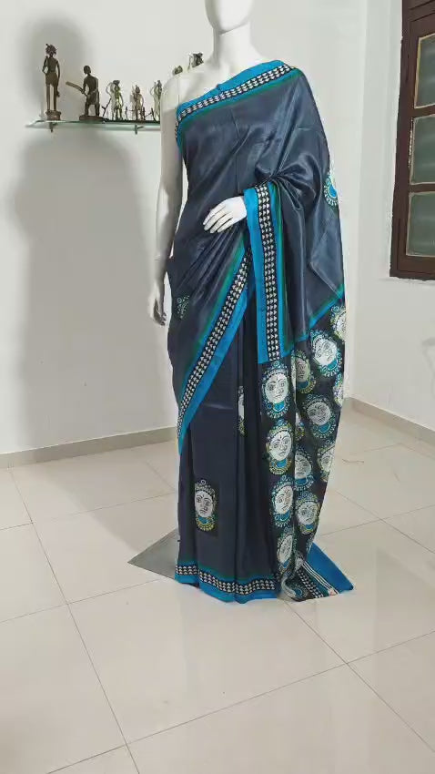 Blue Printed Vishnupuri Silk