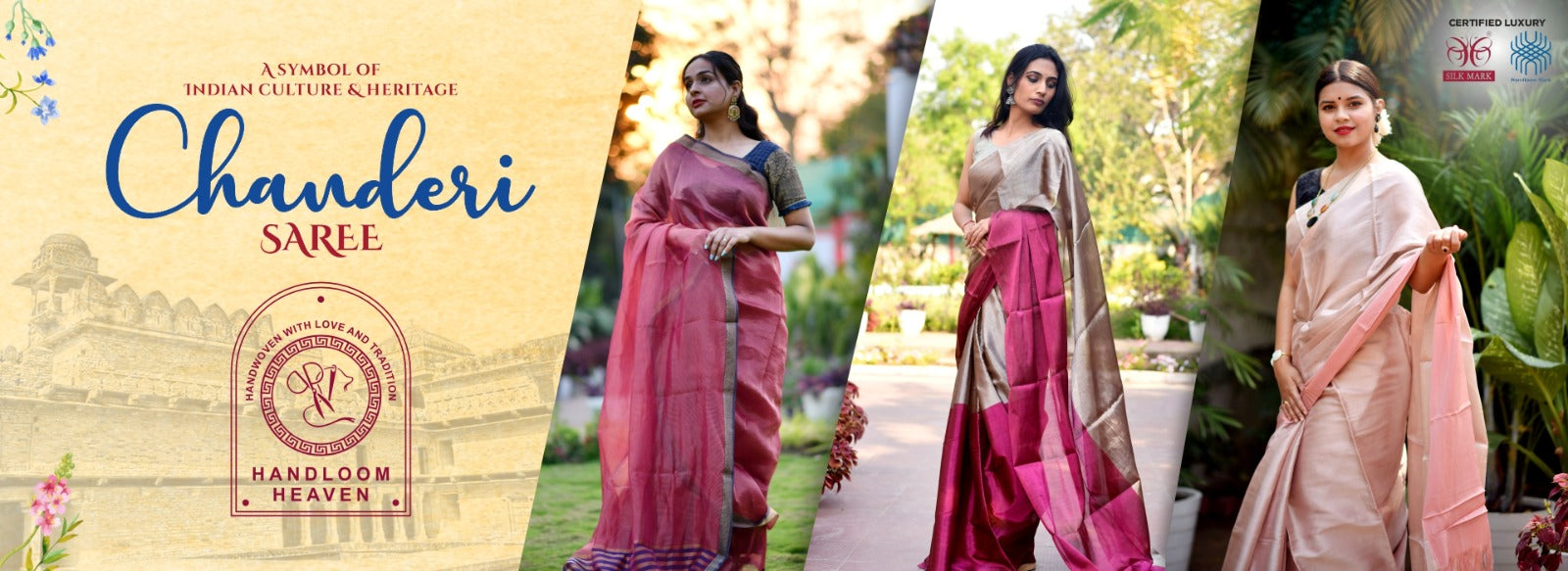 Silk Serenity – Handwoven Pure Silk Chanderi Saree with Blouse & Silk Mark Tag